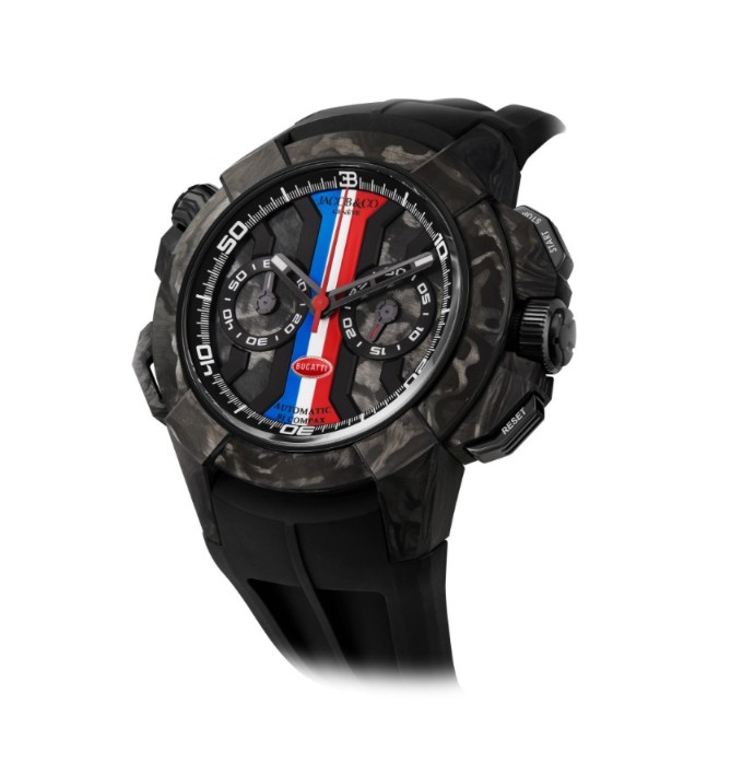 Following up on the enduring appeal of the 47-mm versions, Jacob & Co. went on to create a 44-mm Epic X Chrono. This alternative case size opens up the Epic X Chrono to a new crowd, seduced by Jacob & Co.’s unique design features in a universally wearable, definitely unisex format. The inspiration of the design came from the letter X which symbolizes something unknown, mysterious and appealing which was the energy of the brand at the time. Epic X Chrono 44MM is the high function of Epic X with an extra dose of elegance. A natural step in the complication and design direction, Epic X Chrono 44MM retains all the core elements of its namesake collection, and takes them all one level higher. A level that the chronograph perfectly represents. The crown guards, the pusher protectors, the X shape that runs from the lugs through the dial, the skeleton parts, they all embody the transformation of Epic X into a sports chronograph with a sense of material exclusivity and a refined state of mind.